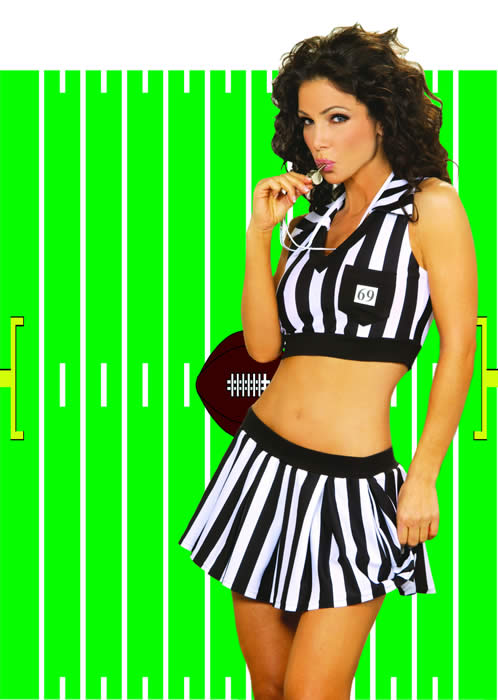 3 pc costume includes a V neck top, mini skirt and a whistle. $51.00