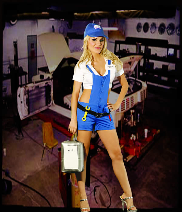 | 8 pc costume includes jumper, short sleeve button front top, hat, removeable badge, belt, screwdriver, wrench and inflatable oil can. $71.25 |
